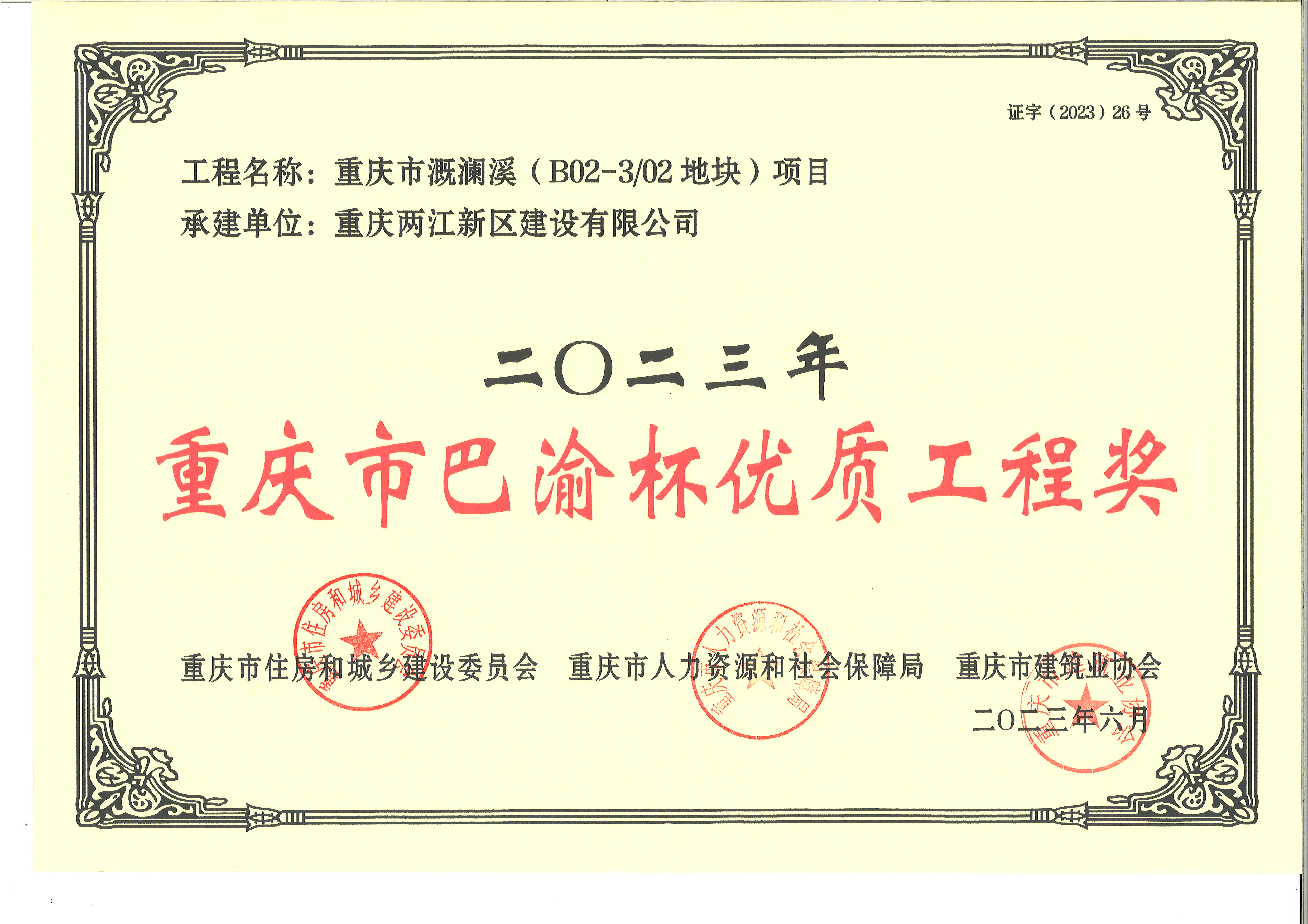 溉瀾溪住宅項(xiàng)目獲得巴渝杯優(yōu)質(zhì)工程獎(jiǎng)